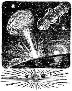 Та ось у кабіні спалахнула червона застережна лампочка, глухо застугоніли ракетні двигуни. Космічний корабель ішов на посадку.