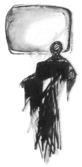 Не встигла вона це сказати, як відчинились двері, і на порозі з’явилася стара розпатлана жінка у ветхому халаті з свічником у руці. В мерехтливих променях свічки вона здавалась примарою.
