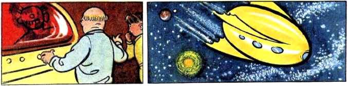 Ми приготували вам маленький сюрприз, друзі, — засміялися вони. — Навмисно не повідомили про приліт. Як бачите, апарат літає в космосі, мов вітрильник, без ракетних двигунів. Рухається він за допомогою гравітації (притягання небесних тіл). Проблема оволодіння гравітацією розв’язана!