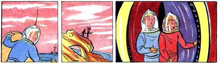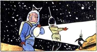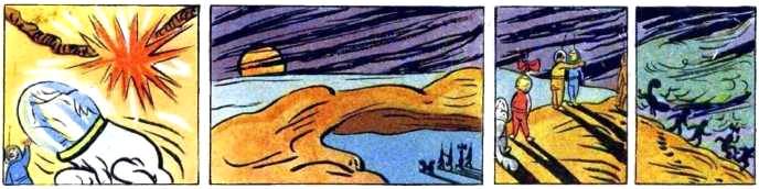 Пройшовши крізь подвійні двері, вони потрапили до кают — компанії, де можна було дихати вільно. Хутко скинули скафандри й кинулися до столу з найрізноманітнішими наїдками та освіжаючими напоями.