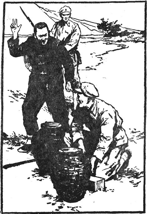 Открыв вторую корзину, Хэ Лун-цин стал внимательно перебирать рыбу. И вдруг в этой груде рыбы он заметил что-то белое. Он наклонил корзину и на дне увидел продолговатый предмет, оказавшийся жестяной коробкой, закрытой со всех сторон наподобие консервной банки. Коробка оказалась тяжелой. — Что внутри? — спросил Хэ Лун-цин. — Тоже рыба. — А почему она в жестяной коробке? — Это самая лучшая рыба. Ее очень любит моя мать. Я боялся, что она может испортиться, и положил ее в коробку, — невозмутимо ответил человек. Хэ Лун-цин внимательно посмотрел на него и заметил, как дрогнули мускулы на его лице. — И Чжи-цай, дай мне нож. — Нельзя ее вскрывать, — всполошился незнакомец. — Эту рыбу на всей границе не найдешь. Если в коробку проникнет воздух, рыба испортится. Вы за это ответите. Там правда рыба, слово даю. Рубите мне голову, коли там еще что-нибудь. Молодой и не имеющий еще достаточного опыта, И Чжи-цай растерялся. «А если в коробке и правда только рыба? Ведь мы тогда нарушим правила», — подумал он, и, передавая нож, вопросительно поглядел на товарища. Хэ Лун-цин, сделав вид, что не заметил его взгляда, взял нож и, внимательно поглядывая на незнакомца, положил коробку на землю. — Ведь вы бойцы Освободительной армии, люди дисциплинированные, не то что гоминьдановцы, которые угнетают народ, — сказал он и, успокоившись, нагнулся, чтобы поправить корзину. Но Хэ Лун-цин и не думал возвращать коробку. Он присел на камень, поднял коробку и серьезно сказал: — Вот мы и проверяем, потому что мы бойцы Освободительной армии и несем перед народом ответственность. Понял? — Он крякнул и открыл коробку. Там голова к голове лежали две толстые рыбины длиной более чи. Кроме рыб, в коробке ничего не оказалось. И Чжи-цай с укоризной взглянул на своего командира. Хэ Лун-цин, сжав губы, молча рассматривал коробку со всех сторон. — Ну что, нашел что-нибудь? Ведь сказал рыба — значит рыба, — не выдержал человек, в его голосе послышалась обида. — Все не верите. Теперь вот она испортится. Эх, народная армия, а так с народом обращается! После этого хоть из дома не выходи. — Он протянул руку, намереваясь взять коробку. — Не торопись, еще не все кончено! — Хэ Лун-цин вытащил одну рыбину, взвесил ее на руке II спросил: — А почему она такая тяжелая? — Чего же удивительного! Как же ей не быть тяжелой, если она такая жирная! — Что внутри спрятано? — Боялся, что испортится, вот и спрятал в коробку. Больше и не прикасался, к ней, — увильнул от вопроса незнакомец, но в его голосе послышались нотки беспокойства. Хэ Лун-цин, внимательно смотря на него, стал ощупывать брюхо рыбы. Все трое не произносили ни звука. Стояла напряженная тишина. И тут Хэ Лун-цин, опустив голову, заметил на брюхе едва заметную полоску, оставшуюся от разреза ножом. Он потрогал ее — шов не расходился. Взяв перочинный нож, он вспорол брюхо и заметил внутри какой-то странный предмет. Это была портативная рация. Хэ Лун-цин вспорол брюхо у второй рыбы, и там оказался вороненый американский пистолет. Человек сверкнул глазами, но, увидя наставленное прямо в грудь дуло винтовки И Чжи-цая, молча поднял руки. Туман рассеялся. Высоко в небе сияло солнце, заливая своими лучами цепи пограничных гор.