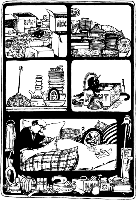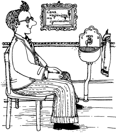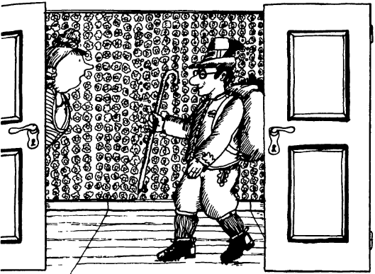 — Пане Фляшкере, до вас гість! Глядіть не дозволяйте йому курити в кімнаті, бо від диму псуються фіранки! І нехай не сідає на ліжко! Для цього у вас є стілець!