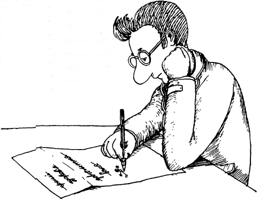 Пан Пляшкер сидів над аркушем паперу й думав аж до самого вечора. Часом він щось писав, тоді закреслював написане, знову писав і знову замислювався.