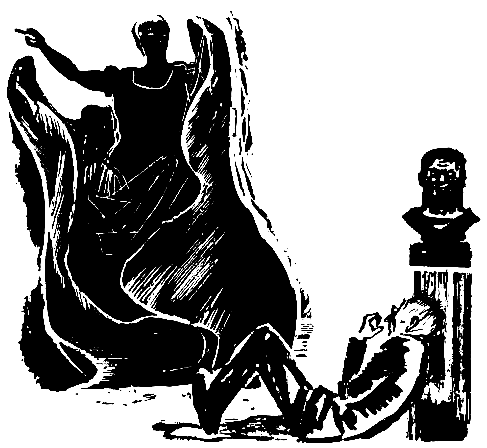 Все наблюдавшие происшествие застыли как изваяния. Только Ритам, развив невероятную для него скорость, бросился к месту сражения. Спотыкаясь на обломках, падая, он спешил наперерез «черепахе». С него слетела шляпа, он потерял свою палку, двигаться ему было труднее, чем обычно, но он все же обогнал животное, подбежал к невысокой колонке, на которой стояла мраморная статуя, высеченная его учителем, Антонио Ульмаро, и уже прилагал все усилия, чтобы снять ее с возвышения.