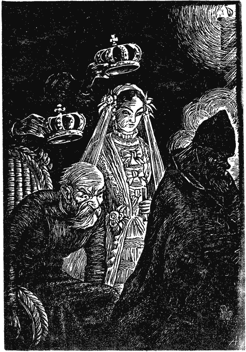 Раненый, Бакунин, Марихен. М а р и х е н (шепотом). Уснул… совсем спит… Такой большой… Б а к у н и н (очнувшись). Ты что, девочка? М а р и х е н. Я ничего… я совсем ничего… Б а к у н и н. Не бойся. М а р и х е н. Я только так… я не боюсь… Б а к у н и н. Ишь, какая у тебя косичка, славно! М а р и х е н (смеется обрадованно, но вдруг становится серьезной). Хотела я… попросить… Б а к у н и н. Ну-ну, попроси. М а р и х е н (решившись). Когда вы будете королем, подарите мне такое платье, в каком ходят фрейлины. (Очень жарко.) Мне только одно, и такое, которое надевают не самые важные… Такое, какое… Б а к у н и н (кладет руку на голову девочки, улыбается ожившими ласковыми глазами). Когда я буду королем, о, тогда я одену тебя в шелковый кринолин, подарю тебе золотой корсет, дам тебе прекрасный пояс из алмазов, и ожерелье из жемчугов, и большой-большой веер из настоящих страусовых перьев. И потом я посажу тебя в карету и повезу туда, где живут одни дети, такие, как ты сейчас — бедные и несчастные, и ты будешь их всех одевать и катать в своей карете… А потом, потом…36.