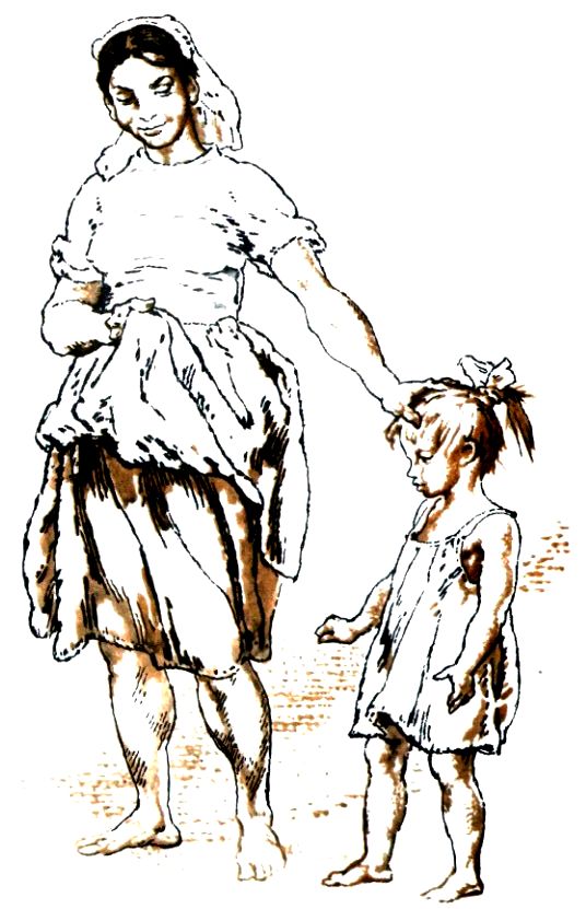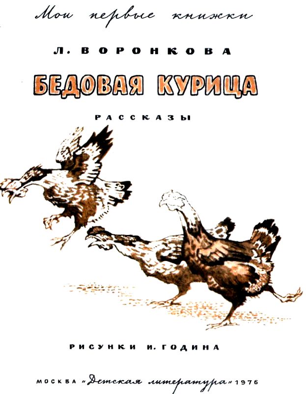 Таня посмотрела на синее небо, на зелёные берёзы… Посмотрела матери в лицо, в её весёлые глаза, улыбнулась и сказала: - Не знаю. Куры расторопно клевали корм. А одна - рябая, мохноногая - опоздала. Она спешила откуда-то издалека - шею вытянула, крылья распустила - да впопыхах и налетела на Таню. Таня даже покачнулась. - Вот бедовая! - сказала Таня. - Людей с ног сшибает. А мать засмеялась и поцеловала Таню в тёплые светлые завитки на макушке. - Эх ты, - сказала она, - хохлаточка моя! С курицей не справилась! Беги умойся да платье надень, а то бабушка скоро завтракать позовёт.