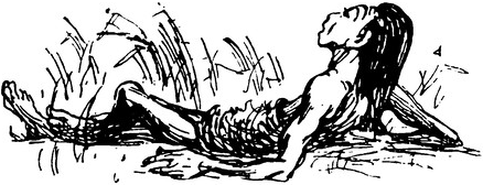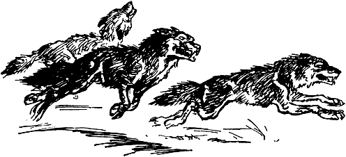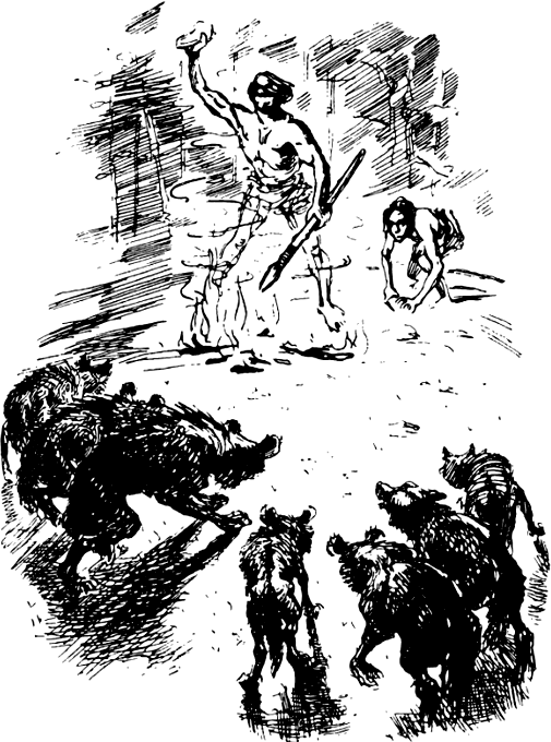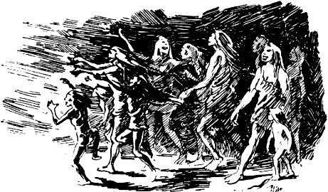 Палаючі гілки посипались на Людей-Собак. Спочатку вони гасили вогонь, але страх і лють переповнили їхні груди. Їх душив дим, опіки викликали запаморочливий біль; краще всяка небезпека, ніж загинути отак без бою...