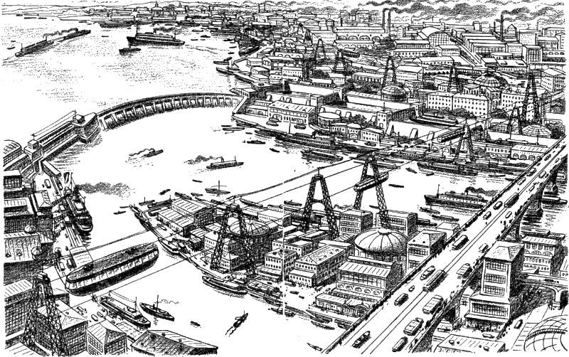 Фантастическая повесть Э. Миндлина, посвященная советскому строительству Рисунки худ. С. Лодыгина