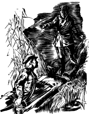 — Не тяни сильно, я держу за самый конец, — предупредил Семен, — дай мне перехватиться лучше. — Ладно! — ответил человек из болота. Семен вздрогнул. Это «ладно» было произнесено голосом, который удивительно не был похож на тот стонущий и умоляющий голос, которым этот же человек просил о помощи. Семен почувствовал что-то недоброе. Но не успел он как следует сообразить, в чем дело, как вдруг сильный рывок за багор вперед заставил его потерять равновесие. Удивленно вскрикнув, Семен плашмя упал вперед— в болото. И, падая, он почувствовал, как выскользнул из его рук конец багра. Отплевываясь, Семен забарахтался в трясине, пытаясь выбраться. Но болото раздалось под ним, и он погрузился в липкую затхло пахнущую тину по грудь. Завязший человек, которого Семен собирался спасать, возился в темноте. На белесом фоне тумана Семен видел, как он высоко вскидывал багром и снова опускал его на трясину. Очевидно, он пытался зацепить багром за следующее бревно. Семен молчал. Убедившись, что ему держаться не за что, а до бревна дотянуться немыслимо, он остался стоять в болоте без движений, зная, что малейшее движение может его погубить. Он только тяжело и быстро дышал. Вода медленно проникала под его гимнасте ку и холодные струйки бежали по спине. Багор вскидывался в воздухе очень долго и во всевозможных направлениях, но на бревно попасть все никак не мог. Потом он стал подниматься все реже и реже и, наконец, совсем остался лежать на траве. В эту же минуту Семен услыхал опять всхлипывания. — Друг, — слезливо произнес снова такой же, как прежде, жалкий голос, — прости, ведь бревна-то нет близко… — Тебя как зовут? — строго спросил Семен. — Кузьмой… прости, друг… — Сволочь ты, зачем багор выдернул? Давай его обратно! — Прости, друг, — все также стонал Кузьма, — я думал, что ты не вытянешь меня, хотел сам зацепиться и вылезти. — Давай, говорю, багор! Слышишь ты? Кузьма помолчал. — Не дам, друг, — застонал он, — боязно мне. Оставишь ш меня здесь, а сам уйдешь… Семен крепко выругался: — Балда! Что же я не начал тебя вытаскивать, а? Что же ты хочешь, чтобы я с тобой тоже потонул? Дудки, давай багор! — Не дам, не сумеешь ты меня вытянуть. Не дам… прости, друг, не могу дать: боязно мне… — Сволочь! — Как хошь… Поведение Кузьмы было настолько несуразным, что Семен даже рассердиться как следует не сумел. Ему не верилось, что этот человек серьезно думает то, что говорит. Он подумал, что Кузьма немного рехнулся от страха и решил ему все объяснить. — Пойми, — начал Семен. — Ведь багор тебя не сдержит: вместе с тобой потонет. — Знаю, друг… — Ну, а знаешь, так чего же? Давай его мне, от меня бревно недалеко, я зацеплюсь, вылезу, а потом и тебя вытяну. А не дашь — оба потонем. — Знаю, друг, да страшно мне, не могу багор отпустить — уйдешь ты… Семен плюнул с досады. — Ну, и чорт с тобой, тони… — И замолчал. Над болотом медленно двигались в тумане странные звуки. Что-то гудело, неожиданно ухало, как будто проваливаясь куда-то в глубину, щелкало и, словно бичом, разрывно лопалось целыми каскадами пузырьков воздуха, поднимающимися с глубины на поверхность. И каждый звук повторялся и множился бесчисленными эхо. Туман редел. Уже тонким облаком поднялся его верхний слой, оторвавшись от основной массы. Солнце взошло, и его скудные лучи, проникавшие сквозь туман, заставляли там и сям дымиться болото. Густы