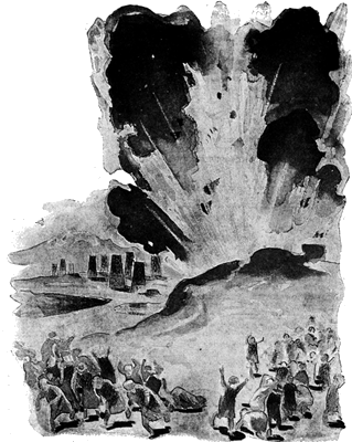 — А! А! А!.. — гортанно вопили они. Один за другим самоеды начали кружиться вокруг костра, как и Ного, потеряв всякий страх. Ветер между тем менялся, и пламя костра стало загибаться в другую сторону. Но плясавшим вокруг костра импровизированный танец жителям становища казалось, что это приказал огню сделать потрясавший бубном тадибей. И когда пламя переметнулось на другую сторону костра, они торжественно завыли. Продолжая свою дикую пляску, Ного с каждым кругом стал приближаться к дрожавшим в предчувствии неизбежной смерти оленям. Когда седьмой круг был завершон, Ного поклонился животным в ноги и поцеловал каждого оленя в морду. И, следуя примеру тадибея, пян-хазово кружились вереницей вокруг жертвенных оленей, кланялись им в ноги и целовали в испуганные морды. Когда все кончили целовать оленей, Ного с помощью Леру — старейшего в становище — стал затягивать на шее оленей ременный аркан. Олени судорожно бились, поводя вылезавшими из орбит глазами; с их прокушенных розовых языков текла густая красная кровь… Однако Ного и Леру были неумолимы; их не трогал предсмертный крик задыхавшихся жертв. И задушенные олени друг за другом падали к подножью деревянных, с мрачными лицами сядаев. Когда все олени были задушены, Ного вырезал у них сердца и положил около сядаев на шкуры песцов. Лесные люди стали жадно есть дымящееся мясо, пить горячую кровь и угощать мясом и кровью полуистлевших деревянных богов…