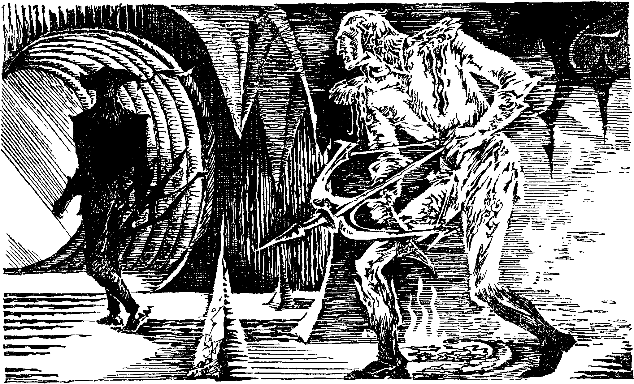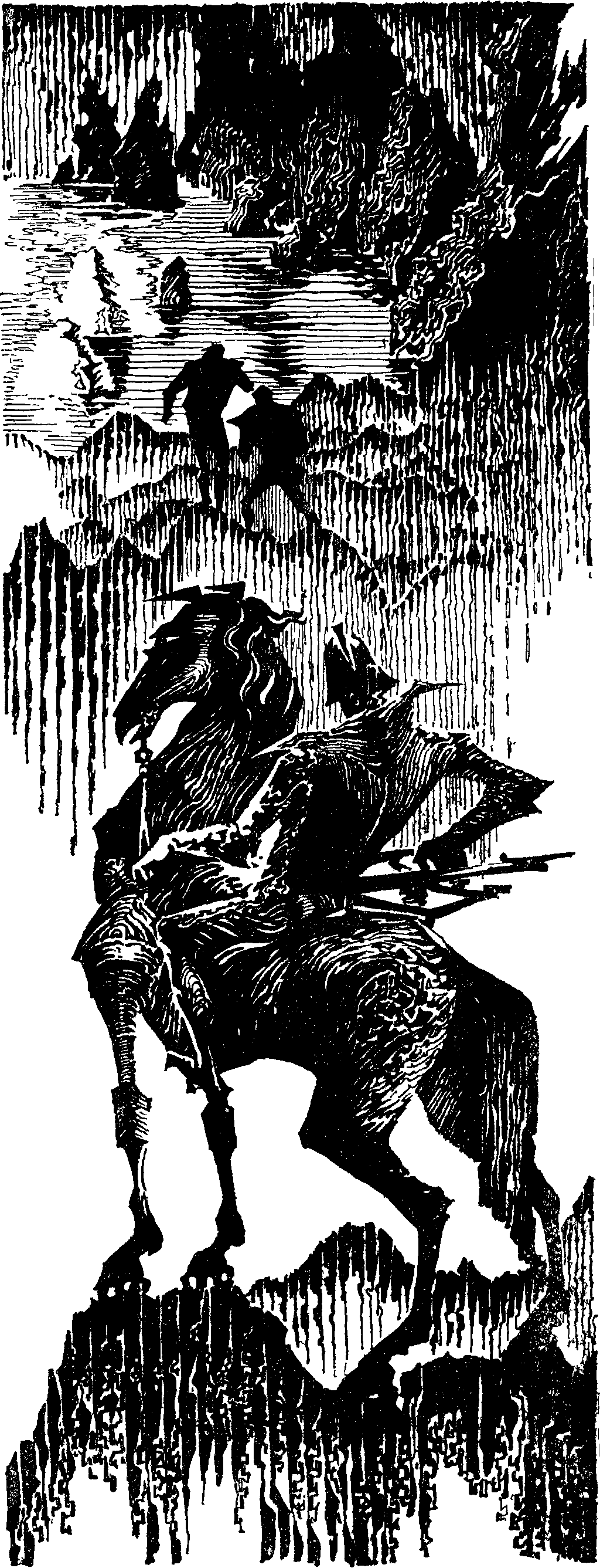 Неприметный успел выбежать из корабля через какой-то пролом. Все кругом гудело, десятки вулканов выбрасывали в небо огненные столбы. Цепляясь когтями за шевелящиеся камни, нахохлившись, клекотал орлан. Пепел покрывал его, кое-где уже дымились и таяли перья. Неприметный топнул каблуком сапога, ожег Планету ударом плети. — Наказание! — крикнул он. — Наказание! Орлан пополз к нему, широко разевая клюв. Местами из его боков уже торчали оплавленные прутья каркаса. — Сначала Дурашку! — сказал себе Неприметный и вскочил в седло, тотчас прожегшее ему мундир. Но боли не было. Орлан тяжело запрыгал и с трудом поднялся в воздух. Скакун у Дурашки был меченый, разыскать его по радиодатчику не составляло труда… Кибернетическую птицу вдруг подбросило, чуть не переломав ей крылья. Это возник еще один вулкан, на том самом месте, где лишь вчера совершил посадку «Толстяк». Крейсера больше не существовало. Неприметный вперил взгляд в экран пеленгатора. Светящаяся точка указывала ему путь… Лететь по прямой мешали километровые столбы огня, приходилось делать зигзаги и петли. Орлан все медленнее махал крыльями, но и цель уже была близка.