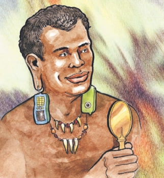 Иллюстрации Веры Лобовской.Салют, Витек! Не помнишь ли ты, какому идиоту пришла в голову блестящая мысль организовать акцию под девизом «Ударим мобильным пробегом по дебрям Африки»? Ах, да. Вспомнил. Передай ему привет. Так вот. Знакомство с дебрями Африки и их обитателями — славными дикарями — прошло в теплой дружественной обстановке. Дикари проявили ко мне неподдельный интерес и пытались использовать демонстрируемые мной мобильники: — для сбивания и колки кокосов, — для разжигания огня путем трения, — для разжигания огня путем ударов один о другой. Я честно пытался их остановить. Они оказались на удивление понятливыми — сказали, что за такие выражения у них обычно зажаривают на ритуальном костре. И что они не преминут это сделать, как только добудут огонь с помощью этих блестящих штуковин. Такие выражения, кстати, известны им от вождя соседнего племени — тот учился пару лет в Патрисе Лумумбе. Он же убедил аборигенов, что демонстрация — это уничтожение монстров. Двоечник, в общем.