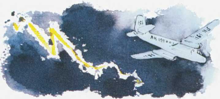 Когда он опомнился, он не поверил своим глазам: он летел вслед за самолётом. Он оказался привязанным к самолёту длинным фалом. Подобно тому как лыжник на водных лыжах несётся вслед за глиссером, так и Козырев теперь нёсся вслед за самолётом.
