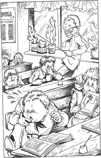 Лидка промолчала. Повернувшись к ученикам, она спросила: — Проверили? Теперь давайте я посмотрю и поставлю отметки. Я задумался о Петькином поведении. Чем он сейчас занимается? Пьет носом воду или лижет раскаленную лопату? Или новый фокус придумал? Лучше бы уж рассказы сочинял… Ко мне подошла растерянная Лидка и сказала со слезой в голосе: — У всех одинаковые ошибки! Ясно, что они бессовестно списывали друг у друга. Миша, что мне с ними делать? — Пороть, пороть, пороть! — сказал я гневно. Я вышел из дому и отправился искать Петьку.