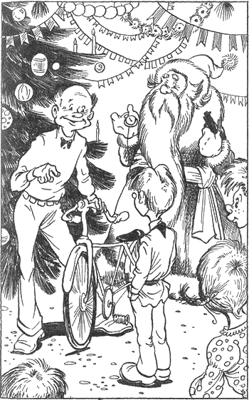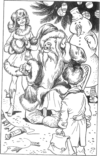 До меня по залу пронеслись девять юных гонщиков, и время каждого было громогласно, на весь зал, объявлено Дедом-Морозом. — Десятый — и последний! — объявил Дед-Мороз. Его помощник — массовик дядя Гоша подкатил ко мне облезлый двухколесный велосипед. До сих пор я помню все: и что верхняя крышечка звонка была оторвана, и что на раме облупилась зеленая краска, и что в переднем колесе не хватало спиц. — Старый, но боевой конь! — сказал дядя Гоша. Дед-Мороз выстрелил из самого настоящего стартового пистолета — и я нажал на педали… Катался я на велосипеде не очень хорошо, но в моих ушах все время звучали слова Деда-Мороза: «Самый необычайный приз за всю историю новогодних елок!» Эти слова подгоняли меня: ведь, пожалуй, никто из участников этого соревнования не любил получать подарки и призы так сильно, как любил я! И к «самому необычайному призу» я примчался быстрее всех остальных. Дед-Мороз взял мою руку, которая утонула в его рукавице, и высоко поднял ее, как поднимают руки победителей боксерских соревнований. — Объявляю победителя! — произнес он так громко, что услышали все дети медицинских работников во всех залах Дома Культуры. Сразу же рядом появился массовик дядя Гоша и своим вечно радостным голосом воскликнул: — Давайте поприветствуем, ребята! Давайте поприветствуем нашего рекордсмена! Он захлопал, как всегда, так настоятельно, что сразу же потянул за собой аплодисменты со всех концов зала. Дед Мороз взмахнул рукой и установил тишину: — Я не только объявляю победителя, но и награждаю его! — Чем?.. — нетерпеливо поинтересовался я. — О, ты даже представить себе не можешь! В голосе Деда-Мороза мне почудилось что-то странное: он говорил как волшебник, уверенный, что может сделать необычайное, сотворить чудо — и поразить всех! И я не ошибся… — В сказках чародеи и волшебники просят обычно задумать три заветных желания, — продолжал Дед-Мороз. — Но мне кажется, что это слишком много. Ты же установил велосипедный рекорд только один раз, и я выполню одно твое желание! Но зато — любое!.. Подумай хорошенько, не торопись. Я понял, что такой случай представляется мне первый и последний раз в жизни. Я мог попросить, чтобы мой лучший друг Валерик остался моим лучшим другом навсегда, на всю мою жизнь! Я мог попросить, чтобы контрольные работы и домашние задания учителей выполнялись сами собой, без всякого моего участия. Я мог попросить, чтобы папа не заставлял меня бегать за хлебом и мыть посуду! Я мог попросить, чтобы вообще эта посуда мылась сама собой или никогда не пачкалась. Я мог попросить… Одним словом, я мог попросить все что угодно. И если бы я знал, как в дальнейшем сложится моя жизнь и жизнь моих друзей, я бы, наверно, попросил о чем-нибудь очень важном для себя и для них. Но в тот момент я не мог заглянуть вперед, сквозь годы, а мог только поднять голову — и увидеть то, что было вокруг сияющую елку, сияющие игрушки и вечно сияющее лицо массовика дяди Гоши. — Чего же ты хочешь? — спросил Дед-Мороз. И я ответил. — Пусть всегда будет Елка! И пусть никогда не кончаются эти каникулы!.. — Ты хочешь, чтобы всегда было так же, как сегодня? Как на этой Елке? И чтобы никогда не кончались каникулы? — Да. И чтобы все меня развлекали… Последняя моя фраза звучала не очень хорошо, но я подумал: «Если он сделает так, чтобы все меня развлекали, тогда, значит, и мама, и папа, 