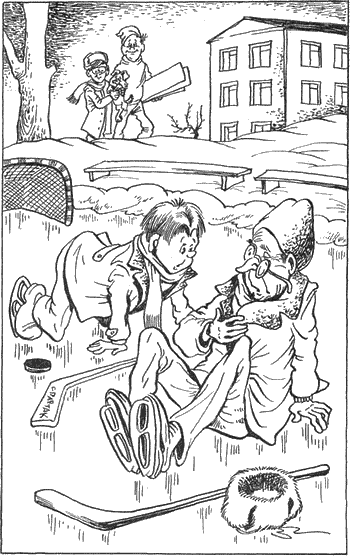 Да, кроме кинофильмов, я еще должен был дома в обязательном порядке смотреть диафильмы. Раньше папа, который был за «беспощадное трудовое воспитание», требовал, чтобы я сам вешал на стену свой пододеяльник, предварительно, конечно, вынув из него одеяло, и чтобы сам возился с черным аппаратом, вставляя в него узкие ленты диафильмов. Теперь папа не разрешал мне вешать экран-пододеяльник и не позволял близко подходить к аппарату — он все делал сам, а я был только зрителем. — Твое дело смотреть! — говорил папа. — Это тоже нелегкое занятие. И правда, это было не очень легко, если учесть, что в нашем домашнем кинотеатре, как и на медицинской Елке, одна и та же программа повторялась каждый день. Мои приятели теперь поздно возвращались из школы: готовились ко дню юнукров. Во дворе и в красном уголке я общался теперь, главным образом, с пенсионерами. Кстати, однажды, когда я заказал в «Столе заказов» в качестве очередного развлечения катание на поезде метро (ничего другого я уже просто не мог придумать!) и когда я спустился на эскалаторе вниз, дежурный по станции усадил меня в первый вагон под табличку: «Для пассажиров с детьми и инвалидов». Я долго упирался, отказывался, но он решительно настаивал: «Нет, нет, сиди, пожалуйста: здесь твое место! Видишь, написано: „Для инвалидов“». В красном уголке я играл с пенсионерами и инвалидами в их любимые «сидячие игры»: лото и домино. И еще я привык слушать разговоры о разных болезнях. Я теперь точно знал, от чего бывают спазмы сосудов, каковы признаки грудной жабы, склероза и язвы желудка. Вернувшись домой, я подробно ощупывал себя и находил признаки всех болезней, о которых слышал во дворе. Кажется, я старел… Нет, не взрослел (поскорее вырасти и стать взрослым было в те годы моей самой заветной мечтой!), а именно старел и дряхлел. Однако не все мои новые друзья поддавались возрасту. Бывший спортсмен дядя Рома все время говорил о пользе физических упражнений. И однажды я решил с его помощью потренироваться в хоккейной игре: мне очень хотелось научиться защищать ворота и когда-нибудь взять реванш за свое первое позорное поражение. Мы договорились, что я буду стоять в воротах, а дядя Рома попытается клюшкой забивать мне голы. Помню, дядя Рома, который очень любил физические упражнения, размахнулся, ударил — я упал и не пропустил шайбу. Но в ту же минуту упал и дядя Рома… Ему стало нехорошо. — Простите меня, дядя Рома, — пролепетал я. — Ничего, ничего… Просто переоценил свои возможности, — сказал он. — Каждому возрасту — свои игры… Вечером Валерик, встретив меня, спросил: — Играешь в хоккей с пенсионерами? — А что такого особенного? Достойные, всеми уважаемые люди… Пользуются заслуженным отдыхом! — Они-то заслуженным!.. — сказал Валерик. И усмехнулся: — Эх ты, пионер-пенсионер! Так приклеилось ко мне еще одно прозвище. «Когда же, — думал я, — сбудется, наконец, предсказание Деда-Мороза, и я узнаю, почему Валерик не подвластен волшебной силе?..»