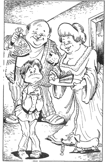 Уже целые сутки я голодал… Я не мог больше питаться пряниками, пастилой и шоколадом. Признаться в этом маме и папе я не хотел. Но когда они ушли на работу, я стал шарить в буфете и на кухне между оконными рамами, где мама обычно охлаждала продукты. «Колдовство какое-то! — злился я. — Ничего нет… Нарочно едят в кафе и в столовой, чтобы я умер с голоду». На моем столе, и в буфете, и на подоконниках лежали пакеты с призами и жестяные коробки с подарками, но я не мог даже смотреть на них. На улице я теперь всегда заранее, по запаху, угадывал приближение кондитерских магазинов и тут же переходил на другую сторону. В полдень я попросил у соседки кусок обыкновенного черного хлеба. Как я мечтал теперь о простом черном хлебе! Или о картошке с жареной колбасой!.. Или о том, чтобы посидеть просто вдвоем с Валериком и поговорить о наших общих делах, как это бывало раньше. Но общих дел у нас с ним уже почти не осталось… Соседка черного хлеба не нашла.