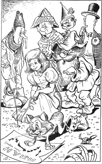 — Край страны Мурлындии, — сказал он печальным голосом. — А почему нет пограничного столба? — спросил Петька. Король печально махнул рукой и сказал: — Никому неохота ставить. Я предложил: — Давайте выложим камешками на песке слово «Мурлындия». Вот и будет указание, что здесь начинается страна мудрецов. — Нет, нет, любезный, — возразил король. — Никаких надписей. Когда моего папу задрал в лесу медведь и бедный папа умирал, обливаясь слезами и кровью, он сказал мне такие слова: «Милый сын! Если ты хочешь жить в свое удовольствие, а тебе придется жить именно так, ибо способности к чему-либо другому ты не имеешь, сопротивляйся всякой грамоте, истребляй каждую написанную букву. Помни, что все королевские неприятности происходят от грамотных жителей. Будь здоров, сын!» С этими словами мой бедный папа скончался, и я буду хранить его завет до конца дней. Поехали дальше!