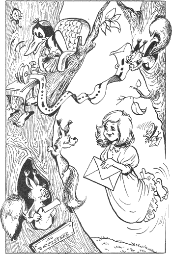 Полина забралась в кресло и раскрыла книгу. На первой странице чернело так много букв, что хотелось поскорее заглянуть на другую. И точно, картинка оказалась на своем месте. Сейчас мы ее рассмотрим. На красивой лесной опушке горит костер. У костра сидит человечек в островерхой шапке и подбрасывает еловые шишки в огонь. Полина уже знала, что это приятно сидеть у костра и подбрасывать в огонь еловые шишки. Вот было бы здорово попасть на эту красивую полянку! Она поискала глазами тропинку и незаметно для себя очутилась среди большущих деревьев. Надо идти, а куда? Вдруг выскочила красная стрелка и замигала впереди. Полина сделала несколько шагов по густой траве и увидела среди высокого папоротника белую дорожку. Стрелка показала, что надо идти прямо по ней, и исчезла. — Это ничего, что я без разрешенья, — сказали сама себе Полина. — Ведь это сказочный лес, и здесь совсем не страшно. — Конечно, — что сказочный лес, — подтвердил человечек у костра. — Он весь нарисованный. Но шумит как настоящий, даже еще шумнее. Садись на бревнышко, послушай, как шумят деревья. И давай знакомиться. Твое имя я знаю, а я сторож этого леса, Лесовик. — А от кого вы его сторожите? — Ни от кого. — Тебе сколько лет? — Пять. — Полина раскрыла ладошку. — Значит, скоро будет шесть. — Скажите, пожалуйста, а волки в этом лесу есть? — Был один. — Тот, который проглотил Красную Шапочку? — Вместе с бабушкой! Тот самый. Но это ужасно древняя история, она живет дальше, далекого отсюда. О волке прибавить нечего — творил невесть что, поделом и наказан. А Красная Бабушка все так же ходит в гости к своей дорогой Шапочке — то есть я хотел сказать… — Это, конечно, уже другая картинка, — подумала Полина, посмотрев на Лесовика и на двух каких-то чудаков, которых он радушно приглашал к костру. Первый, когда сел, загремел ржавым железом, а другой зашуршал, как будто он весь был из бумаги. Этот Бумажный, разумеется, был обыкновенный. Просто штаны и рубашка у него были сшиты из газет. Пожелтевшие от времени, газеты изрядно поистерлись, но в руках он держал свежую. — Только что достал из почтового ящика, — сообщил он. — Почитаем. Ого, есть кое-что новенькое, про эту, как ее… — Про Бабу-Ягу? — Про Бабу-Ягу? Разве об этом пишут в газетах? — О чем же пишут в газетах? — О других газетах, — что да где напечатали или где да что не напечатали. Такой порядок. — Хоть и бумажные, но тоже цепи, — вмешался Железный. — На мне, правда, только одна цепь, да уж зато железная.