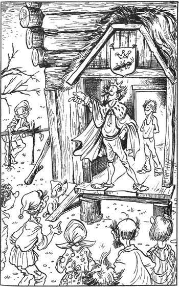 — Сама по себе существует только дурь людская, — возразил премьер. — Все другое требует причины. Для того чтобы случилось волшебство, нужна хотя бы волшебная палочка. В нашем случае — это «спасибо», которое мы говорим волшебнику. Не скажешь спасибо — не будет волшебства. Ходи голодный. Вот вам и обеспечение. — Убедил, — согласился король Мур. — Миша, назначаю тебя министром обеспечения. Будешь докладывать, как жители собирают муравьев и сколько получают продуктов. — Ладно, ваше величество. Попробую. Премьер-министр сказал: — Процедурная часть закончена. Назначаю первое заседание кабинета министров королевства. Ваше величество, не желаете ли высказаться? Король смотрел мимо нас, в окно, где шумели сосны под ветром, летали вороны и поднимались из-за леса белые, толстобрюхие облака. Казалось, он видит там еще что-то, кроме леса, ворон и облаков. Лицо его было одухотворено и сосредоточено. Король поднялся с кресла, прошелся по тронной зале и запахнул мантию. — Я не спал ночь, — сказал он. — Я вспоминал, что же рассказывал про настоящую королевскую жизнь мой бедный папа, которого задрал медведь. Папа королем никогда не был, но ему рассказывал дедушка, который слышал от прадедушки, ну а прадедушка был настоящим королем в каком-то королевстве. От него в нашей семье сохранилась золотая корона и эта бархатная мантия на меху, довольно ветхая… Так вот, Петька! В королевской жизни главное не дворцы из двадцати комнат и лакеи. Главное, что короли совершают великие подвиги! Они сокрушают великанов, завоевывают неведомые царства, освобождают из плена зачарованных принцесс и устраивают пир на весь мир. Вот что рассказывал мой бедный папа, которого задрал медведь. Жать, что я был бестолковым ребенком, невнимательно слушал и многое уже позабыл. Но оставшегося в моей памяти достаточно, чтобы я немедленно предпринял решительные действия. — Ближе к делу, ваше величество, — сказал наглый Петька. — Скоро обед! Его величество сверкнул глазом и рявкнул: — Молчи, подданный, когда изволит говорить твой король! Петька поежился и пробормотал: — Так мы ж играем… — Иная игра не доводит до добра, — жалобно вздохнул добрый доктор Клизман. — Ррразговоррчики! — прорычал военный министр Евтихий. Стало тихо, и его величество продолжал речь: — Будет и дело… С высоты своего престола я плюю на дворцовый комфорт и прочие мелочи. Желаю совершить подвиг! Хватит забав и развлечений. Федька, я упраздняю твое министерство, а тебя жалую званием придворного шута. Митька, отдай ему колпак! — Ах, — сказал Митька. Но ослушаться не посмел, снял свой колпак с бубенчиком и отдал его Феде. Бывший министр развлечений, а теперь придворный шут, мрачно принял колпак, положил его на колени и отвернулся. — Водрузи на башку! — приказал король Мур. Федя сопел, краснел и не исполнял, а король все выше поднимал подбородок. — Ну, водрузи, милок, — ласково сказал Феде премьер-министр. Степана Кузьмича Федя послушался. Он убрал под колпак нечесаные кудри и, к нашему удивлению, стал выглядеть куда приличнее. — Далее, — сказал король Мур так же решительно. — Чем у нас занимается министр медпомощи? Доктор, объясните мне! — Я Постараюсь, — откликнулся доктор. — Министерство медпомощи в моем лице оказывает медицинскую помощь заболевшим и пострадавшим жителям, потому что, ваше величество… Король переби