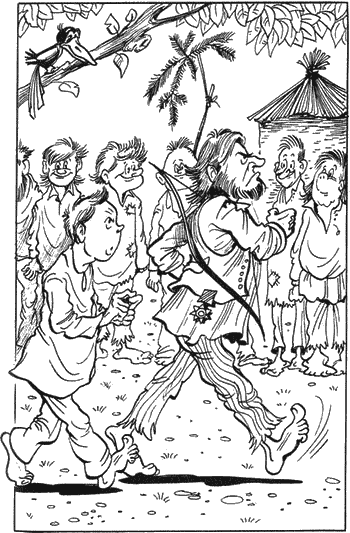 Мы отдышались и двинулись дальше. Мурлындский лес густ, дремуч и пахнет гнилью. Выбравшись из него, мы очутились на пыльной немощеной дороге. На обочине стоял длинный шест. К верхушке его привязаны еловые ветки. — Железная работа, — похвалил Петька. — То-то! — сказал Митька и поправил шест, чтоб стоял прямее. Мы уже снова упарились, когда вдали показалось селение. Я спросил: — Это что за деревня? — Сам ты деревня, — обиделся Митька. — Это город Мудросельск, который есть столица Мурлындии, страны мудрецов! — А много в Мурлындии городов? — поинтересовалась Лидка. — Одного хватает, — ответил Митька с бубенчиком.