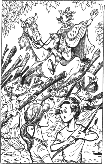 — Вперед, вперед, сыны Мурлындии! — восклицал король Мур, сдерживая поводьями горячего коня. — Нас ждет неведомое царство! Солдаты потрясали дрекольем. Они тоже орали что-то, но в общем гаме отдельных слов не было слышно. Кроме короля, еще Петька и Евтихий гарцевали на лошадях. Остальные были пешие, и я в том числе. Лидка повесила мне на плечо мешок с провизией и сказала: — Миша, игра игрой, это я понимаю, но ты себя береги. Мало ли что может случиться. Это тебе не дома, где каждый позаботится, если ты собьешься с пути. — А ты при чем? — удивился я. — Твоя ли это забота? Придворная дама Лидка опустила голову, махнула рукой и отошла в сторонку. Петька укрощал своего коня, вкушал счастье и ничего этого не видел. Генерал Евтихий построил войско в колонну по четыре. — Рррравняйсь! Смирно! — скомандовал он. Воины застыли, и генерал стал обходить строй, делая замечания. — Что ты стоишь, как только что вытащенный из-под шкафа? — сердился генерал. — Распрями плечи! А ты что? На весь поход наелся? Убери живот! Гррррудь вперед! А ты что? — тыкал он пальцем воину под подбородок. — А я ничего, — оправдывался воин. — Наглец, еще оправдывается! — сердился генерал. Наконец он привел войско в порядок и доложил королю. Мур приказал выступать, и войско двинулось вперед. У каждого воина за спиной была торба с продуктами, а в руке дубина. Строем они умели ходить еще хуже, чем стоять. Воины смешались в толпу, наступали друг другу на пятки, падая и ругаясь. Шум стоял такой, что на войско с сосен дождем сыпалась хвоя. — Вот что может наделать одно слово, если оно сказано мудрым деятелем, — хвалился Петька, показывая рукой на толпу воинов. — Дома я ничего не мог придумать только потому, что ничего нельзя. Когда добрались до пограничной канавы, стояла уже глубокая ночь. Измученное войско зевало. Король Мур, освещенный трепетным светом факелов, обратился к воинам с такими словами: — Сегодня не вышло. Времени не хватило. Но завтра мы непременно перейдем через канаву, отыщем неведомое царство и завоюем. Спите, воины, набирайтесь сил. Нас ждут великие дела! — Привааааал! — скомандовал генерал Евтихий и спрыгнул с лошади. Воины наломали еловых веток и улеглись спать прямо под открытым небом. Только министр мудрости Аркадиус догадался захватить в поход палатку, довольно искусно сшитую из трех одеял. К нему примазался ночевать король Мур.