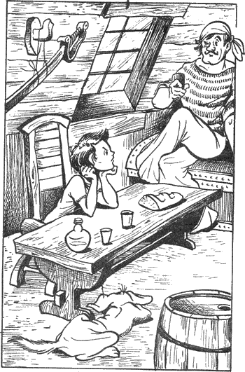 — Отдавай, капитан Прунамель, — насмешливо сказал Стропила. — Тебя все поварята на флоте обсмеют: что же это за капитан, который не заметил, что к его корме другое судно прицепилось! — Опять твоя правда, корсар прибрежный… — согласился капитан. — В суматохе отходили. Я чувствовал, что ход меньше, чем полагается, да не было времени выяснять причину. — Ты не оправдывайся, а возьми-ка нас на борт, — сказал Стропила. — Здесь не жарко, да и сыровато. Брызги летят. — Придется принять вас на борт, — сказал капитан Прунамель. — А плот ваш я разберу на дрова! — Не в музей же его сдавать! — согласился Стропила и начал вместе с Кикимором подтягивать канат. Бывшие мудрецы выбрались на палубу и пошли завтракать. А мы так измучились, что отказались от еды. Петька задремал под стенкой рубки. Лидка тоже клевала носом. Меня тянуло прилечь после тяжелой ночи… Я сказал капитану, что на порядочных судах имеются спальные места. — Вы правы, шеф, — улыбнулся капитан Прунамель. Он провел нас с Лидкой в каюту — теплую, уютную, освещенную только лучом света, проникающим сквозь маленький иллюминатор. В каюте пахло сосновой смолой. Тихо булькала вода за бортом. Лидка легла на деревянную скамейку. Я рухнул рядом, положив голову на ее руку и заснул раньше, чем закрылись глаза. Когда я проснулся, Лидки в каюте не было. Я протер глаза, пригладил волосы и вышел наверх. Солнце уже склонялось к западу. Матросы шумно сражались в карты с бывшими мудрецами и щелкали их по носам колодой. Кирюха по-прежнему сидел в бочке и добросовестно смотрел вдаль. У штурвала стоял Петька. Он уверенно правил, а у капитана был такой невозмутимый вид, будто так и надо. «Неужели Петька умеет?» — подумал я. Мне стало немножко завидно. — Вы проверьте, — сказал я капитану, — может, он не туда правит. На Петьку надеяться нельзя, я уже убедился. — Возможно, на берегу это и так. Не стану спорить, дорогой шеф. Но в море на Петю можно положиться, — сказал капитан. — Я уже убедился, что Петя правит туда, куда надо. Из него вышел бы прекрасный моряк. — Съел? — сказал Петька, не отрывая взгляда от компаса. Я увидел, что нас слушает Лидка, и попытался сострить: — Я рад, что ты хоть на что-то годишься! — Уж не как некоторые, которые только глину месить умеют, — довольно удачно отпарировал Петька. Игроки перестали щелкать друг друга по носам и прислушались к нашему разговору. Я не должен был оплошать. — Кирпичи я делал как хотел, а тебе то ли дадут постоять за штурвалом, то ли не дадут. Это от тебя не зависит. Петька не сдавался: — Если бы в Мурлындии нашелся хоть один специалист строитель, тебе бы даже песок подносить не позволили. Твои кирпичи больше похожи на булыжники. А я стою за рулем при капитане, и он меня хвалит, как видишь! — В тихую погоду за рулем стоять просто, — сказал я. — Это и Ежуня сумеет. Ты бы в шторм попробовал. Петька глянул на меня снисходительно и сказал: — Ты знаешь, в чем высшее проявление морского бескультурья? Не знаешь? Так я тебе расскажу: высшее проявление морского бескультурья в том, чтобы отвлекать рулевого посторонними разговорами. Это у него здорово получилось. Я умолк, потому что крыть мне было нечем. Лидка сказала: — Мальчишки, перестаньте ехидничать, как не стыдно! Миша, ты лучше посмотри: впереди наш берег! Скоро мы будем дома, чувствуешь? Нет, ты ничего не чувствуешь, — вздохнула она. — Ты про