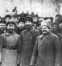 Ф. Э. Дзержинский, Ю. Ю. Мархлевский, Ф. Я. Кон — члены Временного революционного комитета Польши. Крайний слева — И. И. Скворцов-Степанов. Август, 1920 г.