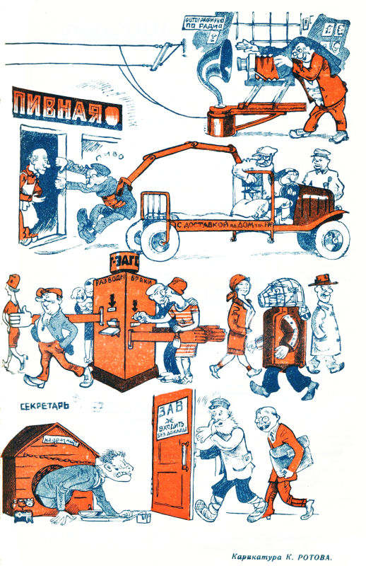 Я не люблю мечтать, т. е. строить планы без данных, имеющихся в реальной действительности. Здесь тоже можно было бы пойти от действительности и, приняв во внимание наше современное строительство СССР, начать мечтать о том, что через сто лет весь СССР покроется огромными электрическими станциями, рассылающими свою энергию всюду. Но мне хочется начать не с вещей, а с человека, источника и создателя всех вещей. Начну с реальности. В тот день, когда редакция «30 ДНЕЙ» попросила меня написать эту статью, мне нужно было купить винтиков для прикрепления розетки на электрической лампочке. Я отправился в первый попавшийся магазин приборов электрического освещения: — Винтиков не имеется. — Винты у вас должны быть. — Мало чего — должны. Винтиков я не нашел во всей Москве. И другая реальность! На вывеске, занимающей собой весь забор, огромными буквами сообщается, что во дворе, начиная с 4 часов, будет производиться осмотр и аукцион вещей, вывезенных из каких-то дворцов. Часы показывают 6, за воротами на пустом дворе гремит оркестр, толпа любопытных осаждает ворота. В щель ворот видна сидящая на дворе кассирша с билетами. После нескольких скандалов с требованием открыть ворота, на что музыканты только весело и добродушно смеялись, ворота открываются заведующим, который только смущенно улыбается. (Хороший человек, даже не кричит на посетителей и даже не оправдывается: действительно неловко получилось.) И третья реальность: у окна магазина стоят несколько человек и, рассматривая выставленное сукно, хохочут, хлопают себя по бокам и говорят: — Хорошенькое сукнецо они выставили. Три маленькие черточки — что греха таить — общего нашего характера. — Не мое дело. А если это дело плохо, то является потребность еще поиздеваться над ним. Видя теперь ту активность, ту энергию и вникание во все стороны жизни нашего комсомола, я начинаю верить, что пожалуй не сто лет, а гораздо меньше потребуется СССР для того, чтобы в характере каждого гражданина появились черты хозяина. Когда обыватели негодуют на комсомольцев и говорят с досадой: — Что они всюду лезут? Какое им дело? Я тут вижу, что они усиленно сбавляют столетний срок. Обычно русский человек отличался тем, что он не лез даже туда, куда обязан был бы лезть, а теперь он «лезет» туда, куда и не обязан лезть. Это великий признак! И мне грезится, что через сто лет (я говорю здесь только о русских, так как не знаю основных черт характера наших меньшинств) в характере русского человека — я имею в виду трудящихся — произойдут следующие изменения (я буду скромен и буду мечтать только о небольшом): Он почувствует себя хозяином (а не «служащим»), лично ответственным за всякий недочет в общем хозяйстве страны. Он не будет ждать приказания и указания со стороны, глаза его получат способность самостоятельно видеть дело. Он совершенно оставит дурную рабскую привычку злорадствовать над прорехами в собственном «хозяйстве». Он, как бережливый хозяин, будет внимателен ко всяким мелочам, помятуя, что все великие вещи складываются из бесчисленного количества мелочей (вроде винтиков). Он совершенно оставит привычку откладывать на завтра дело, которое, ему кажется, потерпит. Он будет заинтересован в движении не только своей части, над которой он непосредственно работает, а и в движении всего целого.