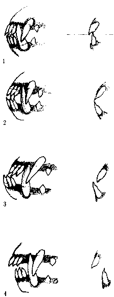 В большинстве случаев при оценке зубной системы вам следует проверить прикус и наличие всех зубов, хотя есть породы, в которых вам придется ограничиться только оценкой прикуса. К числу таких пород, где количество зубов, в частности, премоляров и моляров, не значимы для оценки собаки, относятся проанглийские породы и брахицефалы. К проанглийским относятся национальные породы британских собак и те, для которых Англия стала страной развития. В Англии проверка комплектности зубной системы в силу существующей традиции не проводится. Поэтому кинологический мир, завися в проанглийских породах от британского импорта, вынужден этой традиции следовать, хотя и не безоглядно. В ряде стран все же стараются «укомплектовать» зубную формулу этих собак, предпринимая в этом направлении последовательные шаги и сводя к минимуму отсутствие премоляров. В этой связи определяются конкретные премоляры из числа первых двух и их количество, отсутствие которых не влияет на оценку собаки. Аналогично определяется, отсутствие каких премоляров и в каком количестве позволяет собаке иметь оценку «очень хорошо», а в каких случаях — «хорошо». Также указывается, за какой недокомплект собака дисквалифицируется. Эти меры по преодолению олигодонтии (неполнозубости) играют положительную роль, если они проводятся без риска, ведущего к утрате типа. Однако, как уже говорилось, в породах, стандарт которых предписывает все 42 зуба, снисходительность недопустима. Брахицефалы, т. е. собаки, поперечный размер головы которых превышает продольный, отличаются укорочением лицевых костей черепа, что делает нецелесообразной постановку вопроса о полном комплекте их премоляров. При проверке прикуса вам надо иметь точное представление о норме для данной породы: она может исчерпываться единственным вариантом, а может представлять и альтернативные формы смыкания челюстей. При оценке ножницеобразного прикуса вы должны помнить, что прикус считается только в том случае таковым, если ВСЕ резцы верхней челюсти своей внутренней поверхностью накрывают внешнюю поверхность ВСЕХ резцов нижней челюсти. Выход даже одного резца нижней челюсти из-под накрывающего его верхнего уже означает отсутствие ножницеобразного прикуса, что квалифицируется соответственно стандарту. Ножницеобразный прикус может отличаться глубиной, и в случае его измельчания вы квалифицируете его как плотный или даже как «прикус на пределе», если простой проверкой ногтем снизу вверх вы цепляете все резцы верхней аркады. Резцы нижней челюсти могут располагаться по прямой — «в линейку», по дуге — «лодочкой», либо с нарушением рядности: от слегка выступающих вперед двух зацепов до иррегулярного расположения. Только в случае линейки можно говорить о полноценной ширине нижней челюсти. В различных породах стандарты по-разному оговаривают отношение к характеру расположения резцов нижней аркады, что должно вами соответствующим образом учитываться. В ряде пород ножницеобразному прикусу позволено с возрастом меняться на прямой, тогда в стандарте вы найдете указание на этот счет. Поэтому, начиная экспертизу конкретной собаки, возьмите себе за привычку непременно спрашивать о ее возрасте, — это окажется полезным для вас во всех отношениях, поскольку сориентирует вас на типичные возрастные особенности, важн