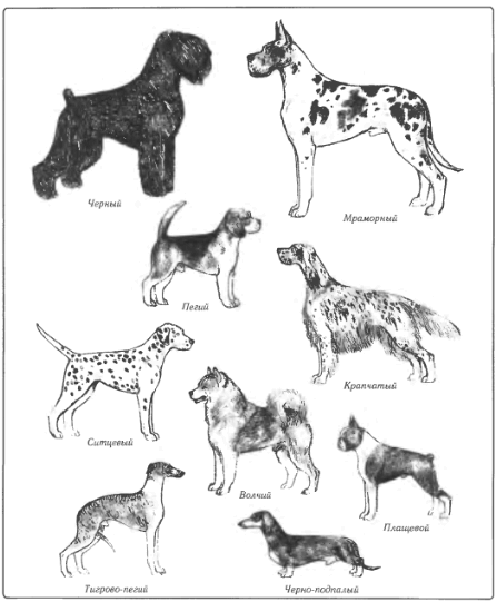 Окрас должен быть четко квалифицирован относительно стандарта, в котором перечислены все его возможные варианты. В редких породах разрешены все окрасы, в большинстве пород введены ограничения, которые позволяют ответить на вопросы:• какие окрасы являются стандартными, • какие отклонения от стандарта можно считать допустимыми / недопустимыми для сохранения оценки, • какие отклонения в том числе наличие / отсутствие, распределение, расположение, форма или четкость очертаний пятен, пежин, подпалин или зон, позволяют квалифицировать собаку, а какие — обязывают ее дисквалифицировать.При оценке окраса собаки часто требуется определить и отметить в описании выраженность пигмента — признака, являющегося также важной характеристикой породного типа. Как правило, одновременно проверяют на соответствие стандарту пигментацию мочки носа, губ, век, когтей, при необходимости кожи — и подушечек лап. Пигментацию десен, пасти, в отдельных случаях языка обычно проверяют при осмотре зубной системы. В ряде пород окончательный окрас устанавливается достаточно поздно, поэтому надо четко представлять себе, до какого возраста можно проявлять терпимость. В жесткошерстных породах, где шерсть подлежит триммингу, окончательный окрас иногда проявляется при полноценной длине ости, — поэтому оценку окраса здесь надо производить особенно внимательно. В иных породах запрещается черная маска, однако если в такой породе встречаются, к примеру, собаки стандартного тигрового окраса с черной головой, то мы не должны говорить о маске, поскольку маска, по определению, покрывает только лицевую, но не черепную часть головы. Не наказывается также возрастное поседение, проявляющееся обычно на морде у старых собак (не путать с сединой по корпусу у черных ризеншнауцеров и русских черных терьеров). Травма также вызывает обесцвечивание волос, которое не должно браковаться. Однако любого рода ухищрения, используемые для удаления нестандартных пятен или изменения окраса, должны наказываться дисквалификацией собаки.