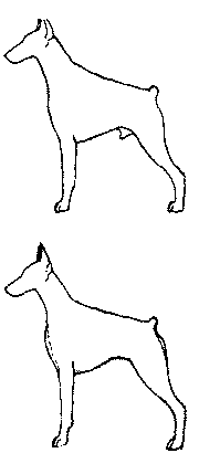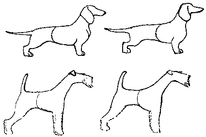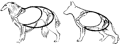 Рис. 166. Округлые «добавки» к туловищу суки (круп и форбруст) придают ей свойственные приметы женственности, в отличие от кобелей, чей рисунок должен быть гораздо более жестким