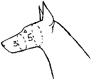 Голова делится на две части: черепную (череп) и лицевую (морда). Голова (рис. 18), будучи характерным породным признаком, варьирует по нескольким параметрам:• по степени массивности: от легкой до тяжелой; • по длине: от короткой до длинной; • по мере сухости: от сухой (туго обтянутой кожей) до сырой (свободно одетой кожей, образующей морщины, складки, отвислости); • по форме: клинообразная (от острого до тупого клина), кирпичеобразная, скуластая (с выступающими скулами), длинномордая, короткомордая, яблокообразная, округлая, прямоугольная, квадратная, сигарообразная и т. д.; • по характеру рельефа: сглаженный рельеф, выступающий рельеф.ЧЕРЕП может быть:
