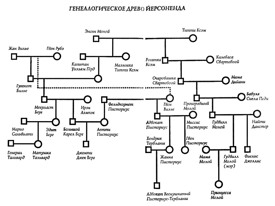 Ассегай — легкое, короткое копье, которым пользовались воины-зулусы. Бучу — местное растение, известное своими целительными качествами. Дагга — южно-африканское название марихуаны. Домини — пастор голландской реформистской церкви, как по-английски, так и на африкаанс. Дростди — официальное название здания суда городского магистрата (ланддрос) во времена голландского правления. Клооф — ущелье (изначально голландское название, теперь общепринятое в южно-африканском английском). Куду — африканская антилопа с винтовыми рогами. Мееркат — юркое норное животное из семейства мангустов. Мути — африканское название для снадобья или колдовского зелья, сделанного традиционным целителем. Пандур — историческое название для солдата кои-кои, служащего в голландском полку. Термин пандур используется иногда голландцами, как прозвище для пехотинцев. Ройбуш — дословно «красный куст». Популярный южно-африканский травяной чай, заваренный из листьев местных кустов. Сангома — традиционная целительница или колдунья. Сьямбук — бич из шкуры антилопы (изначально голландское слово, теперь общепринятое в южно-африканском английском). Токолоше — злой дух, который появляется в виде злобного карлика Африканцы его очень боятся. Финбос — общее название для группы кустов, растущих в Капе (особенно в юго-восточном Капе). Буквально — «изящные кусты», в переводе с голландского, из-за узких листьев. ZAR — Южно-Африканская Республика.Пролог