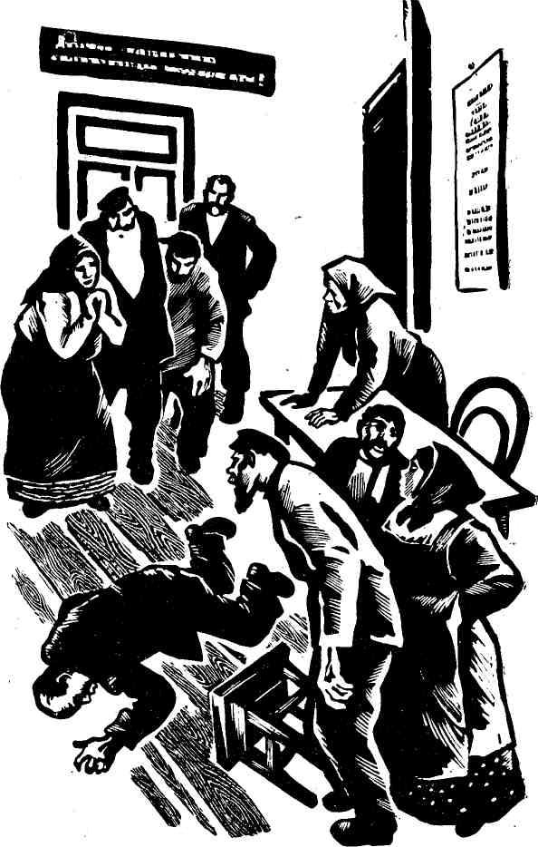 Собрание разошлось без всяких результатов. Только я сцепился с Фролком, и мы, как два петуха, налетали друг на друга. А в стороне на бревнах сидел Никола-селькор и брал что-то на карандаш.