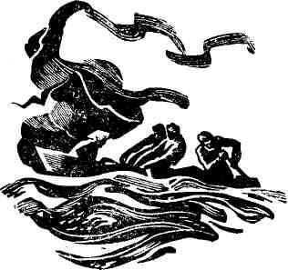 Но я и сам приглядывался к реке. Не река, а море, ни краю ей, ни берегу. А мы, как песчинки, прилипли к бортам лодки. Вот прошел мимо белый пароход, лодку нашу подняло на волны и начало трепать. Я взглянул на перевозчика: он сидел в корме с веслом и улыбался — храбрый, видать, человек, значит, и нам нечего бояться. А если перевернет лодку, волной, — вдруг пришла в голову мысль, тогда уж, думаю, уцеплюсь за весло, и — к берегу. К которому только берегу-то? Оба от нас далеко. Ох, скорей бы, — мысленно сочувствовал я старушке.