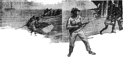 Вдруг с лодки раздался предостерегающий крик. Я оглянулся. За стволом пальмы человек натягивал огромный лук и целился прямо в меня…