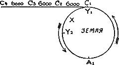 — Луна, вращаясь около земли, постоянно обращена к ней одной и той же стороной. Значит, в отличие от земли, которая вращается около оси, луна не вращается? — Совершенно верно, не вращается. — Но, позволь, разве ребенок, танцуя вокруг стола, и постоянно обращенный лицом к лампе на столе, не видит попеременно перед собой то одну, то другую, то третью и четвертую стену комнаты. Это то же самое, как если бы он, возвращаясь в исходное положение, совершил один полный оборот около оси своего тела. Также и с луной. Совершая один оборот около земли, она один раз обращается около своей оси. Так вот, не было оборота и оказался все таки оборот. А может случиться и так. Ты скажешь один оборот, а я докажу, что два. Представь себе неподвижное колесо А (например, 3 коп. на рис. 1), по окружности которого, начиная с положения 1, катится колесо Б, одинакового с ним диаметра. Возвращась в исходное положение, сколько совершило оборотов колесо Б?