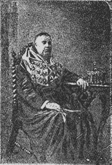 Ректор университета, знаменитый историк проф. А. де-Васканилос в парадном одеянии. На столе его головной убор, похожий на корону.