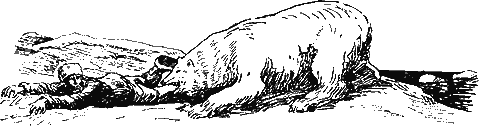 Все внимание промышленников теперь сосредоточилось на морском промысле на тюленя. За зиму было добыто и мирно покоилось в снеговой могиле до девяти сот голов нерпы, но промысел решили продолжать, ежедневно выезжая на припай. Снег со льда сильно таял и собакам было тяжело тянуть груженые нарты. Ласково светит солнышко и хорошо греет уставших охотников. Вода спокойна и прозрачна. Видно, как в глубине проходят стаи рыбы и гонится за ними нерпа. Тюлень теперь потерял много сала, плохо держится на воде да и охота на рыбу лишает его возможности часто показываться охотнику. Прислонившись удобно к ропаку и положив винтовку на лед, сладко дремлет Летков. …Зеленые деревья шумят вершинами, ветви ласково кивают, яркие травы и цветы что-то нашептывают на ухо. Речка на солнце блестит расплавленным серебром и режет глаза. Милое лицо склонилось к Леткову и тихонько тормошит нежная рука… Вставай, да вставай же ты, соня этакий! Вставай! — и тянет, и тормошит… Сильный толчек. Грезы волшебного сна нарушены грубой и страшной действительностью. Пока Летков дремал, белый медведь невдалеке вынырнул из воды. Сильные лапы мощно загребают зеленую, прозрачную воду. Зверь трясет головой и жмурится от солнца… Вдруг его черный нос улавливает запах человека. Медведь моментально нырнул. К спящему охотнику по воде медленно двигается льдинка, кажется, самая безобидная льдинка, но за нею чуть видна голова зверя, подталкивающего льдинку мордой, медведь за ней прячется иподкрадывается к человеку. Маленькие черные глаза зверя налились кровью и злобно поблескивают. Чуткие ноздри черного носа лихорадочно ходят, смакуя запах и вкус горячей крови и мяса, слюна с пеной падает с морды. Челюсти, с ужасными клыками, сводит свирепая судорога и зверь еле сдерживается, чтобы не испустить торжествующий, дикий рёв. Еще одно осторожное движение и медведь с ревом схватил зубами Леткова за ногу и потащил в воду. Напрасно Летков пытается схватить винтовку, она уже осталась позади. Напрасно цепляется руками за неровности и выпуклости льда, обламывая ногти и до костей прорезая пальцы о лед…