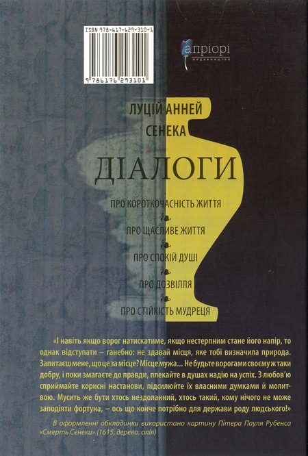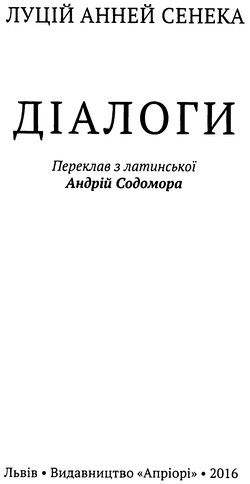 Чільний римський стоїк Сенека, дарма що жив понад два тисячоліття тому, — серед нас, сьогоднішніх: сам же зізнався своїм сучасникам: «Пишу не для вас, а радше для прийдешніх поколінь». І це було правдою: хіба ж не до нас, не до нашого таки дня звернені хоча б ті його слова, що винесені на обкладинку пропонованого читачам видання його філософських «Діалогів»? Та не лише з книжкових сторінок промовляє мислитель; його думки, поради, настанови вкарбовані в камінь — варто лише, проходячи вулицями й площами ренесансного Львова, приглянутися до фасадів кам’яниць: там, хоч і затерту віками, бачимо (й чуємо, озвучуючи її) латину. Віки затирають написи, але — не їхній дух і їхню гостру злободенність. Вони — наче дороговкази у нинішньому метушливому, скаламученому потоками хаотичних інформацій споживацькому світі. Virtus — мужність, доброчесність — ключове слово латинських сентенцій, почерпнутих зі словника стоїків. А ще — Animus — дух, «що тіло рве до бою», дух, що спонукає занепалу, сірими буднями пригнічену людину «випірнути до кращого життя» і тим самим — відмежуватися від усіх інших створінь, що потуплюють погляд у землю, дбаючи лише про ситість тілесну. Діалогічний плин думок Сенеки — це і є вияв того життєдайного духу, що велить людині, попри всі життєві труднощі, триматися, тобто обрати собі за опору духовну вертикаль, шанувати її, подивляти незбагненне у своєму розмаїтті гармонійне творіння Всевишнього, бути гідною часткою (мікросвітом) тієї величної Цілості. Сенека — на порозі християнської доби. Цінності, які він так натхненно проповідує, у чомусь найважливішому збігаються з християнськими чеснотами. Плекати в людині те, що з людини робить людину за її суттю, а не лише за назвою, йти на голос розуму, а не керуватись уподобаннями юрби, — ось провідний заклик усіх філософських творів Сенеки; заклик особливої ваги у нашу добу, коли матеріальне, як ніколи, бере гору над духовним, коли криклива, всюдисуща реклама закликає всіляко догоджати своєму шлункові… Сенека ж не лише закликає — допомагає заблукалому серед хаосу й бездоріжжя, у галасливу добу, з її індустрією розваг та усіляких зваб — не знеособитися, залишитися собою, подати й іншим руку допомоги. Отож, «Діалоги» Сенеки — не лише для зацікавленого читання: це — розмова з давнім мислителем, який, силою думки випередивши свою добу, став нашим сучасником, порадником, учителем.Юрій Николишин