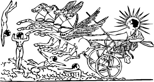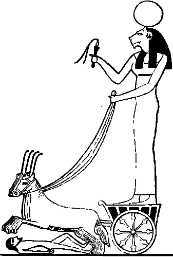 Астарта на колесницеНа заре она потушила огонь и перенесла малыша в колыбельку. Так продолжалось много ночей подряд. Но однажды царице Астарте вздумалось тайком проследить, как ухаживает за ее сыном новая нянька. Глубокой ночью, когда все обитатели дворца, кроме стражников, охраняющих царскую семью, спали крепким сном, она встала, неслышно подкралась к покоям маленького царевича и, приоткрыв дверь, заглянула в щелочку. Страшное зрелище предстало ее глазам! Малыш, ее любимый ненаглядный сын, лежал на раскаленных углях, объятый дымом и пламенем! Царица схватилась за сердце и заголосила на весь дворец: — На помощь! Стража, сюда! Ее пронзительный крик перебудил всех. Захлопали двери, загрохотали шаги на лестницах. Комната наполнилась людьми. — Хватайте ее, злодейку! — кричала Астарта. Рабы-телохранители, спеша исполнить приказ Астарты, бросились к Исиде. Но Исида лишь посмотрела на них — и рабы рухнули на пол. Богиня встала и повернулась лицом к толпе. Десятки глаз с ненавистью глядели на нее. Служанки Астарты осыпали ее проклятиями. Один из воинов уже занес копье, собираясь метнуть его в Исиду. Богиня поняла: ей больше ничего не остается делать, как открыть правду. Она произнесла волшебное заклинание — и вдруг на глазах у замершей толпы вся преобразилась. Исчезли богатые одежды, подаренные ей Астартой; богиня вновь была в своем изодранном траурном платье, в котором она исходила столько селений и дорог. От ее пальцев струился свет, а над головой золотом вспыхнул солнечный диск со змеей-уреем. Все тут же попадали на колени и стали молить богиню о пощаде. — Несчастная! — воскликнула Исида, гневно глядя на Астарту. — Зачем ты ворвалась сюда и помешала мне! Знай: я — Исида, великая богиня колдовства и магии. Я хотела сделать твоего сына бессмертным, но ты своими криками разрушила чары — и этого исправить нельзя. Теперь твой сын, как и все люди, состарится и умрет… А может быть, он умрет и раньше. Плачь, рви на себе волосы, несчастная! Ты сама во всем виновата! Перепуганная Астарта не могла вымолвить ни слова. — Ступайте прочь! — приказала Исида. Все, кто был в комнате, кинулись к выходу; толпа протолкалась в двери и сгинула. Только царь и царица остались с Исидой, готовые выполнить все, что пожелает богиня. Исида затушила огонь, достала ребенка из очага и передала Астарте. — Вот твой сын! Он цел и невредим. Затем она одной рукой вырвала из стены деревянную колонну и разломила ее пополам. В колонне был сундук. Царь и царица отпрянули в изумлении. А Исида, увидев сундук, встала перед ним на колени, обняла его, прижалась лицом и закричала от горя. Ее крик был таким громким, что маленький царевич не вынес его и умер на руках у матери. Так судьба наказала Астарту за то, что она помешала Исиде сделать царевича бессмертным[35].