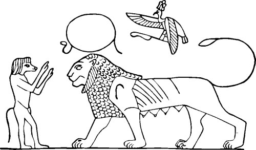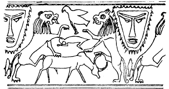 Борьба эпического героя Гильгамеша со львом (вавилонская цилиндрическая печать)