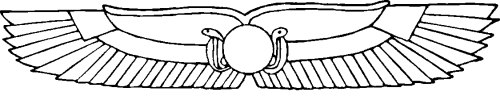 Крылатый солнечный диск с двумя уреямиЛишь однажды, на триста шестьдесят третьем году правления Ра, против него подняли мятеж заговорщики — злые демоны, недруги солнца, покровители мрака и темноты. Превратившись в крокодилов, гиппопотамов и змей, они пошли на солнечного бога войной — целая армия крокодилов, гиппопотамов и гадов. Ведь врагов Ра египтяне всегда изображали в обликах этих животных. Но владыка Вселенной быстро навел порядок. Узнав о мятеже, он велел своему сыну Гору вступить в битву с заговорщиками. Гор принял облик крылатого солнечного диска, взлетел ввысь и с небес обрушился на стан врагов так стремительно, что те немногие демоны, которых он не успел пронзить своим не знающим промаха копьем, без оглядки бежали. В память о блестящей победе сына Ра нарек его именем Гор Бехде́тский — поскольку битва с демонами была у города Бе́хдет — и велел Тоту поместить изображение крылатого солнечного диска на всех храмах Та-Кемет. И жизнь опять вошла в привычное русло. Столетие за столетием в Та-Кемет царил покой. Но время шло, и великий Ра состарился. В крыльях его уже не было прежней силы, острые соколиные глаза перестали различать мелкие предметы, когда бог солнца взирал с поднебесной высоты на долину Нила, притупился слух, покрылись хлопьями седины голубые волосы. Однажды владыка мира, сидя в Золотом Чертоге на троне, обложенном пуховыми подушками, предавался горьким размышлениям о том, что могущество его иссякает.