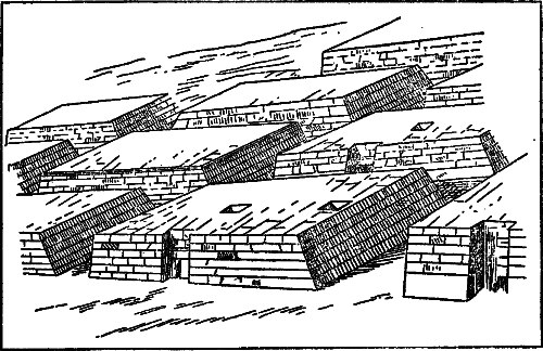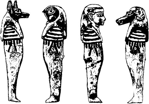 Вторые врата Загробного Мира и их стражи…Вот и третьи врата Преисподней остались позади. Ладья Вечности проплывала теперь мимо гробниц и захоронений. Солнце осветило богато украшенные погребальные залы вельмож с расписными стенами, гранитные саркофаги и статуэтки богов — хранителей сна запеленутых мумий; и бедные погребения с истлевшими пеленами на телах мертвецов. Оживленные сиянием солнца, покойники встали, с воздетыми руками вышли навстречу Ладье и запели хором: