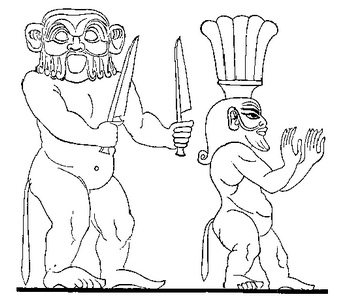 Бог Энки и сражающиеся герои