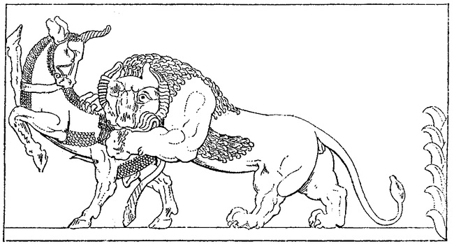 Прибыло как-то раз Великое море в дом Кумарби. Показал Кумарби ему свое жилище и, когда увидел, что понравился ему дом, сказал без обиняков: — Видишь сам, что просторен мой дом, но нет в нем хозяйки. Не отдашь ли ты, о Море, дочь свою, прекрасную Шертапшурухи, мне в жены? «Захочет ли Шертапшурухи покинуть морские просторы? — подумало Море. — Но не век же ей плескаться на мне. Да и найти ли зятя лучше, чем могучий Кумарби?» — Хорошо, о великий Кумарби, отец богов! — ответило Море после короткого раздумья. — Приходи через семь дней в мой дом и получишь из рук моих Шертапшухури. Желанна она многим, как сладкое молоко, но отдам я ее тебе, чтобы не был ты одинок. И возрадовался Кумарби, услышав эти слова. Кликнул он слуг своих и велел созвать музыкантов, чтобы проводили с почетом дорогого гостя под удары барабанов и звон бронзовых кимвалов до самого дома. На седьмой день устроилось Великое море на сиденье в ожидании Кумарби. И пришел Кумарби, как было условлено, и получил в жены самую прекрасную из дочерей. И родила она ему отпрыска-змея, которого назвали Хедамму. Поручил Кумарби заботы о сыне верному своему слуге. Пока тот был мал, омывал его слуга водой и натирал маслом, заботился о том, чтобы сыт был сын Кумарби. Нелегко было насытить Хедамму. Приводил слуга по две тысячи быков, и коней, и коз, и ягнят. Но не могли они насытить прожорливого Хедамму. Проглотив принесенную пищу, набрасывался Хедамму на отвратительных саламандр и лягушек, водившихся вокруг Куммии и Дуддула[321], собак и рыб заглатывал он тысячами, словно это был сладчайший мед. Но ничто не могло насытить чрева Хедамму. И стал он, едва подрос, разорять в поисках пропитания целые страны, уничтожая города. Услышали в Куммии боги вопли людей, мольбы о помощи, к ним обращенные, и взволновались. Стали совещаться Небо, Земля, Энлиль и Иштар[322], как узнать, что случилось на земле. И предложила Иштар пойти проверить, в чем дело, действительно ли людям угрожает гибель и боги могут лишиться положенных им жертв. Направилась Иштар к морю, которое облюбовал Хедамму, и увидела по пути разрушенные им города. «Какой же силой должен обладать тот, кто способен один сокрушить целый город?» — подумала богиня. И тут появился из моря сам Хедамму.