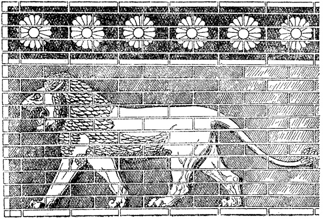 Образец вавилонского рельефа из глазированных изразцов (эпоха Набуходоносора)— О несчастный! — воскликнул Этана. — Кто с тобою жестоко так обошелся? — Я сам виновник своих несчастий! — ответил орел с тяжким вздохом. — Много лет занимал я гнездо на высоком дереве, в корнях которого обитала змея. Мы жили как добрые соседи, предупреждая друг друга об опасностях. Если мне удавалось догнать и убить онагра, часть добычи получала нижняя соседка. Так мы блюли клятву верности, произнесенную перед ликом Шамаша. Но однажды у змеи появились детеныши, и мое неразумное сердце замыслило злое. Дождавшись, когда змея отправится на добычу, я распростер крылья, чтобы слететь вниз. Один из моих орлят, умная пташка, догадавшись о моем намерении, пропищал: — Остановись, отец! Все взору Шамаша открыто. Но я не придал значения этим словам и, упав вниз, растерзал и съел змеиных детенышей. Вскоре приползла мать-змея и, увидев, что змеенышей нет, взмолилась справедливому Шамашу, чтобы он наказал убийцу беззащитных. И дал Шамаш совет змее — отыскать тушу буйвола и в нее проникнуть. Вскоре почувствовал я милый мне запах гниющего мяса и обратился к детям своим: — Давайте слетаем отведаем буйвола. — Не надо, отец, — закричал мой орленок, умная пташка. — Может, в туше гниющей змея притаилась? Не послушался я малютки, полетел, сел на тушу, клюнул, кругом огляделся, снова клюнул, а как очистил все мясо снаружи, в чрево забрался. Тут меня змея и схватила, обломала мне крылья, всего общипала, истерзала и бросила в яму, чтобы кончил я век свой жалкой, голодною смертью. Сжалился над орлом Этана, напоил его свежей водой, перевязал ему раны, и быстро они затянулись. Орел взмыл в небо, пробуя крылья, и опустился рядом с Этаной. И тогда сказал Этана орлу: — Крылья твои сильны. Отнеси меня на небо, к престолу великого Ану. — Садись! — отозвался орел. — Поудобней устройся. Прижмись грудью к моей спине. Ухватись за крылья руками. Едва успел Этана за орла схватиться, как тот взмыл в небо. Когда они высоко поднялись, орел к нему обратился с вопросом: — Взгляни на землю, что ты там видишь? Взглянул Этана вниз и ответил орлу: — Вся земля стала похожа на холм, а море за нею не шире Евфрата. Поднялись они еще выше, и земля показалась Этане рощицей малой. Орел поднимался все выше и выше, пока земля стала не шире арыка, который копает в Аккаде садовник. — Вот теперь мы добрались до верхнего неба, где боги одни обитают, — сказал орел, и тотчас же Этана увидел небесные врата, а за ними дворец великого Ану.