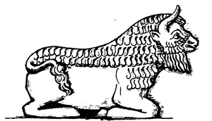 Каменный крылатый бык, охраняющий вход в ассирийский дворец