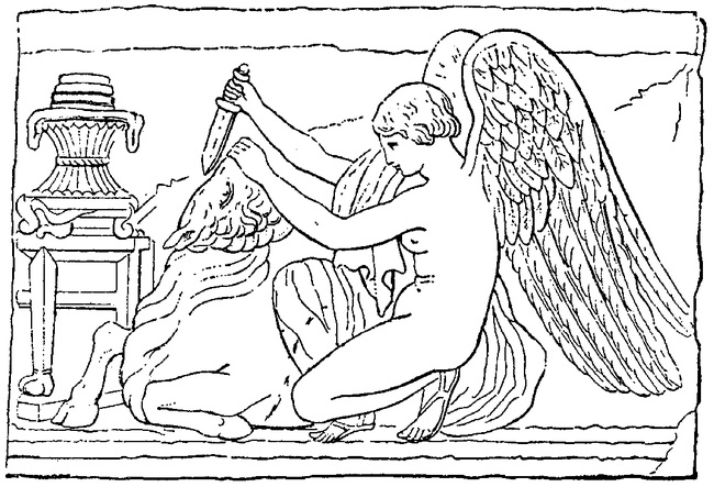 Победа в облике Митры, перерезающая быку горло